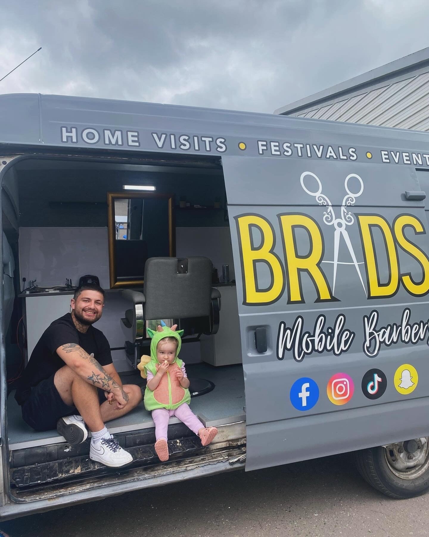 I left the last shop and had lots of customers wanting me still, so I said I’ll come to your house! Everyone loved the idea, so I thought ‘how can I bring the barbers to them’? I then decided to buy the vans and build them!